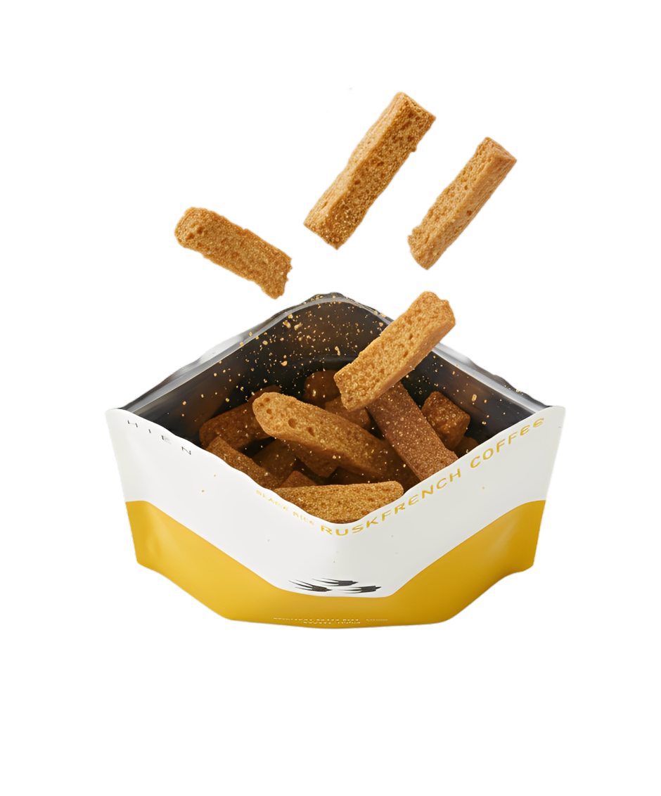 HIEN のラスクは食べやすいスティック状。 パン製造の工程をもとに、焼き上げたバケットから 作られた手切りのフランスパンラスクです。
